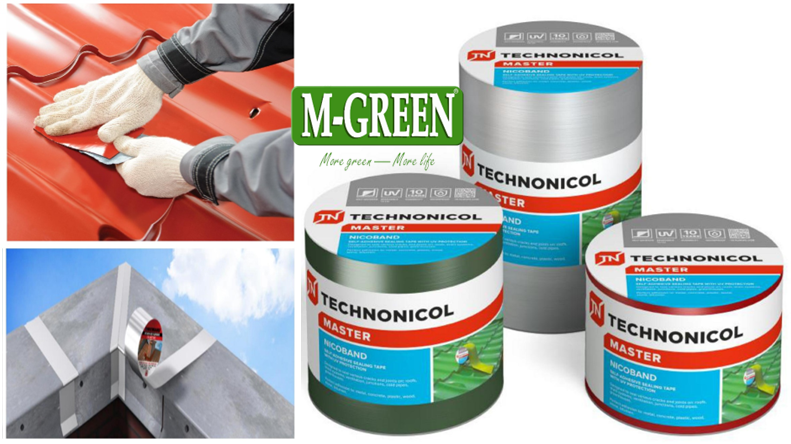 Băng keo chống dột tự dính M-GREEN được nhập khẩu trực tiếp tại Liên Bang Nga. Một giải pháp rất tiện lợi để bịt kín các vết nứt và mối nối khác nhau, được dùng để sửa chữa mái nhà, hệ thống cần chống dột. Với lớp bảo vệ đặc biệt chống tia cực tím sẽ giúp tuổi thọ của băng keo bền lâu khi sử dụng ở ngoài trời, phù hợp với mái nhà.