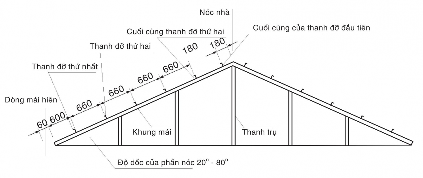 + Khoảng cách xà gồ từ 660mm đến 800mm (không quá 1.000mm)